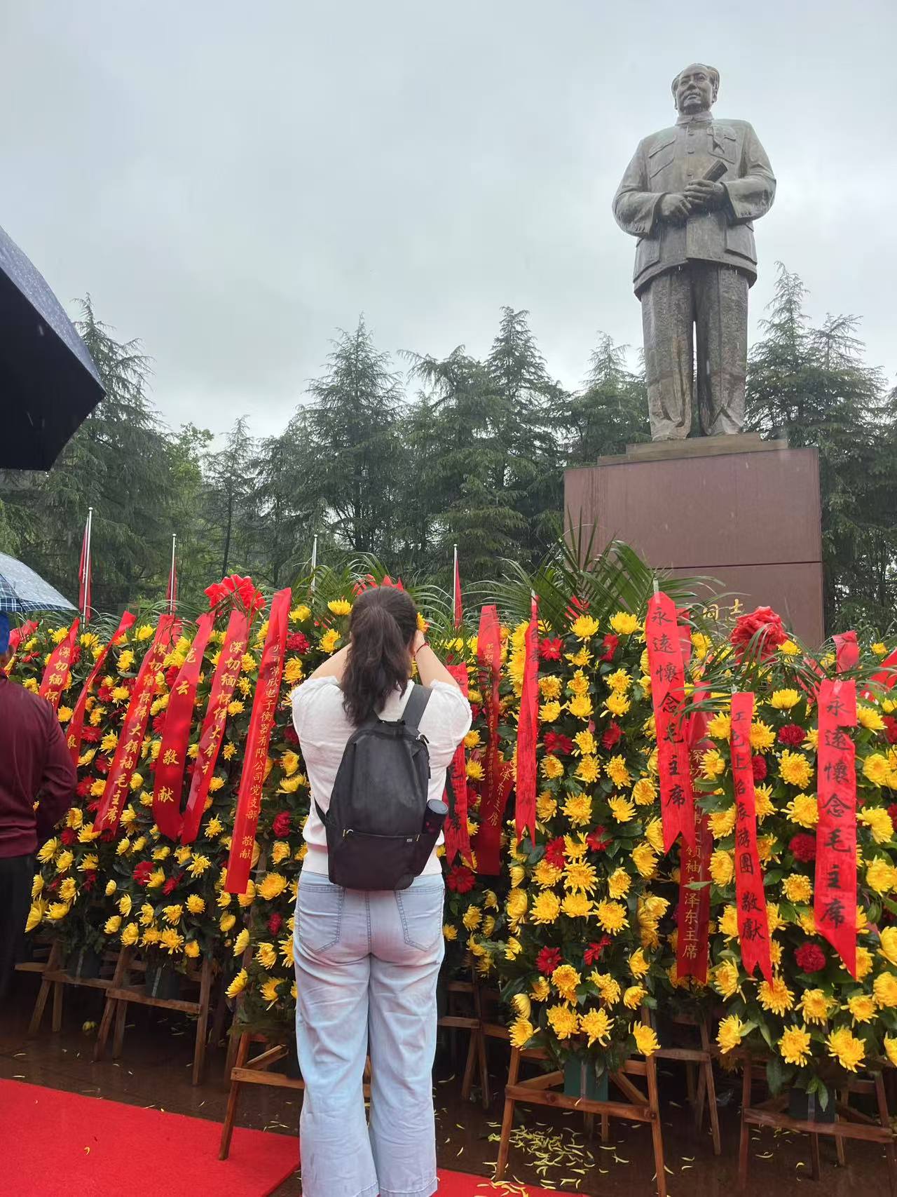 次日,盡管大雨傾盆,卻澆不滅黨員們的熱情。在韶山毛澤東銅像廣場(chǎng),全體黨員莊嚴(yán)肅立,向毛澤東銅像敬獻(xiàn)花籃,深深三鞠躬,表達(dá)對(duì)偉人的無限崇敬與追思。隨后,大家參觀了毛澤東故居。這座始建于1878年的土木結(jié)構(gòu)農(nóng)舍,是毛澤東誕生和度過少年時(shí)光的地方 ,屋內(nèi)陳列的舊物,無聲訴說著偉人的成長經(jīng)歷,激勵(lì)著黨員們不忘初心、艱苦奮斗。滴水洞曾是毛澤東回鄉(xiāng)居住之所,這里靜謐清幽,黨員們?cè)诖烁惺軅ト说募覈閼选?/p>