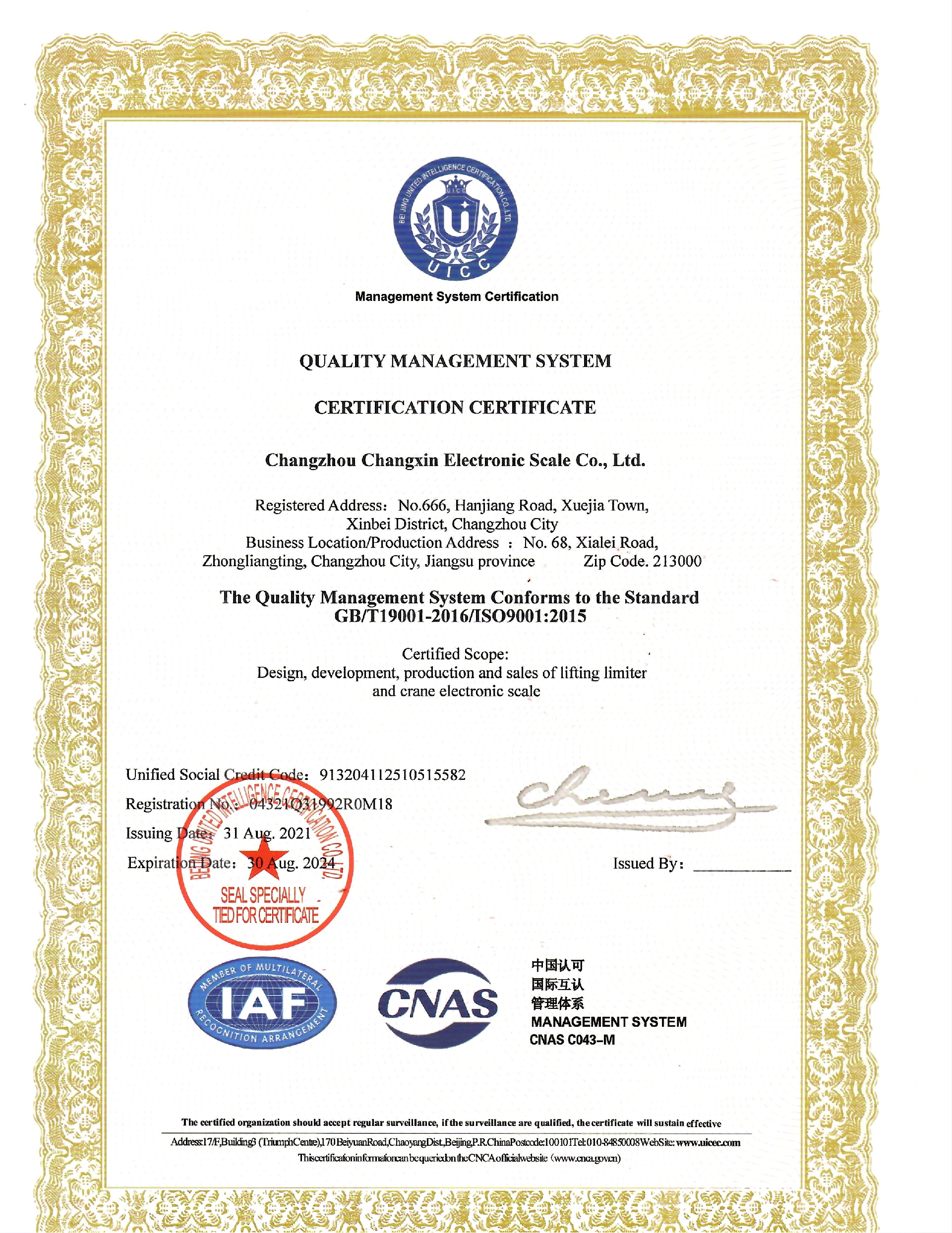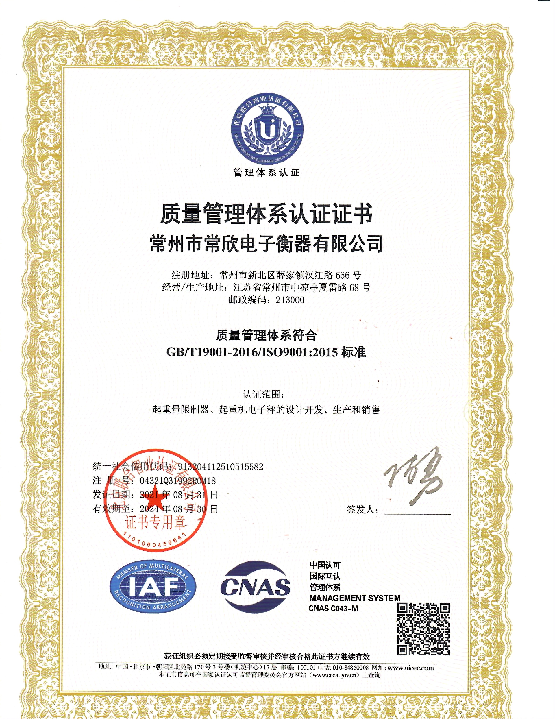 1998年12月,常欣公司率先在同行業(yè)中通過了IS09001質(zhì)量體系的認(rèn)證。2008年被確認(rèn)為全國起重機(jī)械標(biāo)準(zhǔn)化技術(shù)委員會委員,參與制訂